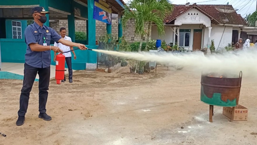 Praktik Cara Penggunaan APAR (Alat Pemadam Api Ringan) oleh Pak Kakam kepada Mahasiswa KKN UINRIL